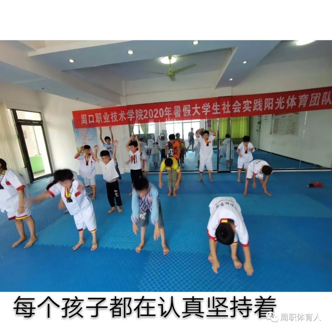 周口职业技术学院体育学院“阳光体育”志愿服务队在李海磊、史帅两位老师的带领下开展了为期十余天的社会实践活动,光阴似箭,岁月如梭,社会实践生活也接近尾声,一直以来,每个队员对社会体育志愿社会实践事业充满了热诚。在实践工作中都能够求真务实、开拓进取、大胆创新、乐于奉献,努力做好每次实践活动,圆满地完成本职工作。在学习实践中,更能够严格要求自己,以身作则,凡是要求学生做到的,自己先要做到。