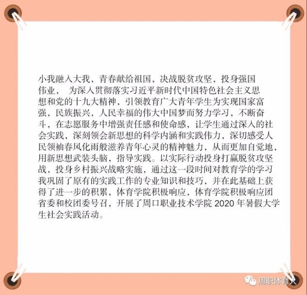 体育学院2020年暑假大学生实践活动