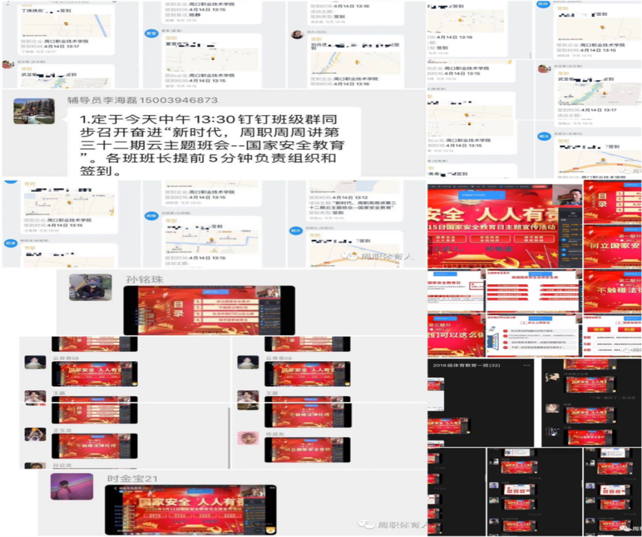 4月14日下午13:30,在体育学院钉钉班级群里,李海磊老师紧紧围绕“国家安全,人人有责”,结合当前疫情发展形势和大家关切的问题,分别从树立国家安全意识、不触碰法律红线、生活中我们可以这样做和保守国家秘密法四个方面展开探讨,他教导大家一定要学会感恩、懂得感激,做个诚实守信、有责任有担当的新时代大学生。